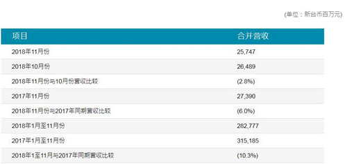 友達光電稱,該公司今年11月合并營收為新臺幣257.5億元(約合人民幣57.2億元),較上月減少2.8%,與去年同期相比減少6.0%。友達光電11月份整體大尺寸面板出貨量包括液晶電視、桌上型